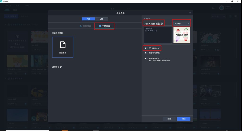 1.建立新專案 > 切換空間辨識 > 輸入專案名稱並設定專案封面圖
