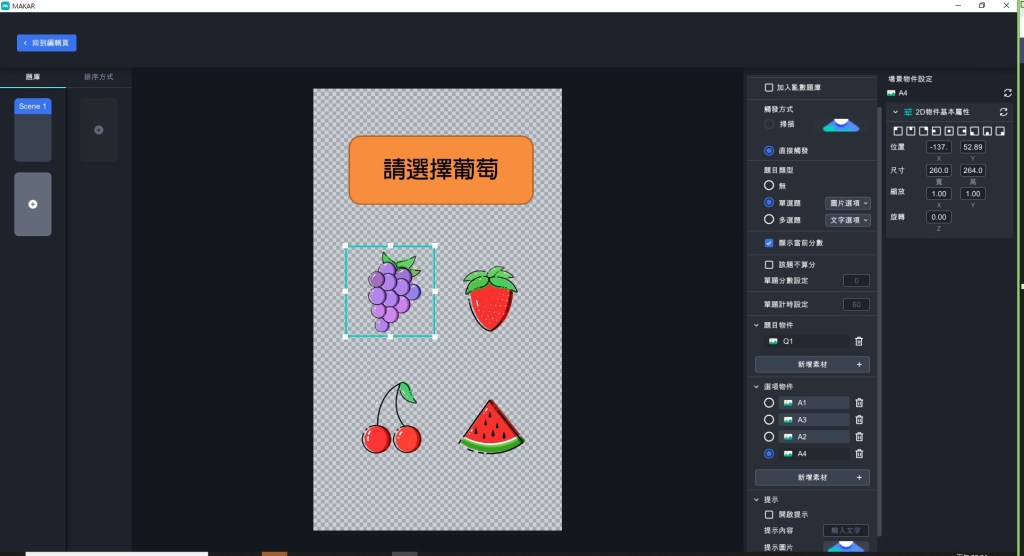 ● 選項物件 > 新增素材 > 圖片 > 選擇A1.png、 A2.png、 A4.png