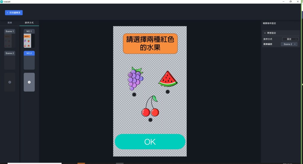 ● 題目物件 > 新增素材 > 圖片 > 選擇Q2.png