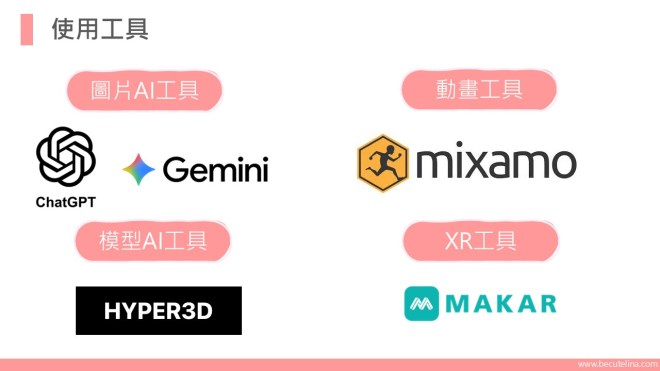 從圖片生成、3D 建模、角色動態到 AR 互動體驗,一堂課完整走過全流程。