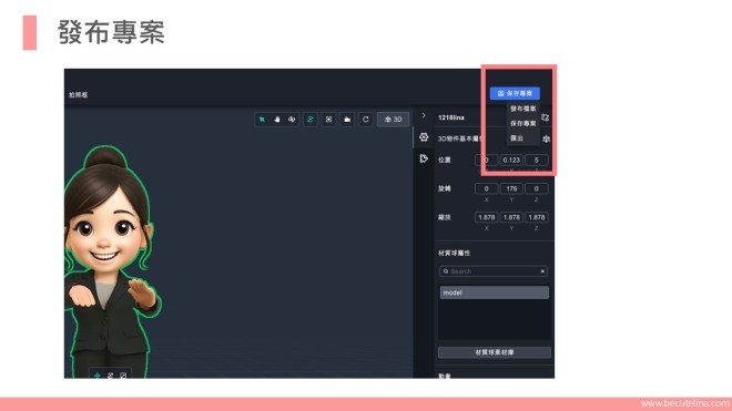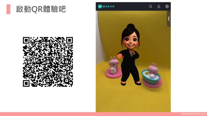 將角色匯入 MAKAR 製作專屬 AR 拍照框,並發布WebAR不需下載App、立即分享到社群。